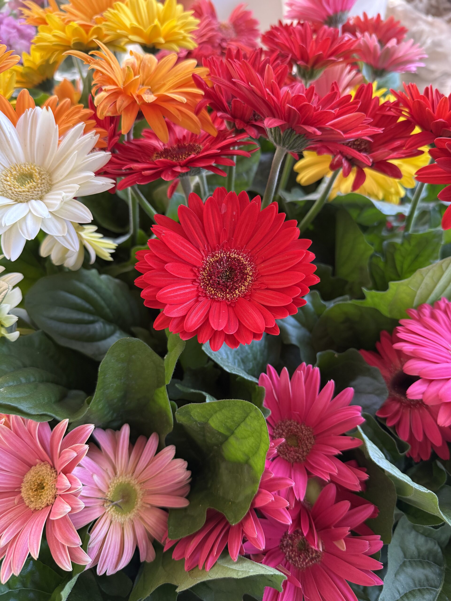 A cserepes gerbera (Gerbera jamesonii) élénk színű, napra emlékeztető virágairól ismert szobanövény. Világos, közvetett fényt és mérsékelt öntözést igényel, virágai hosszú ideig díszítenek, így népszerű dekoráció otthonokban és irodákban.