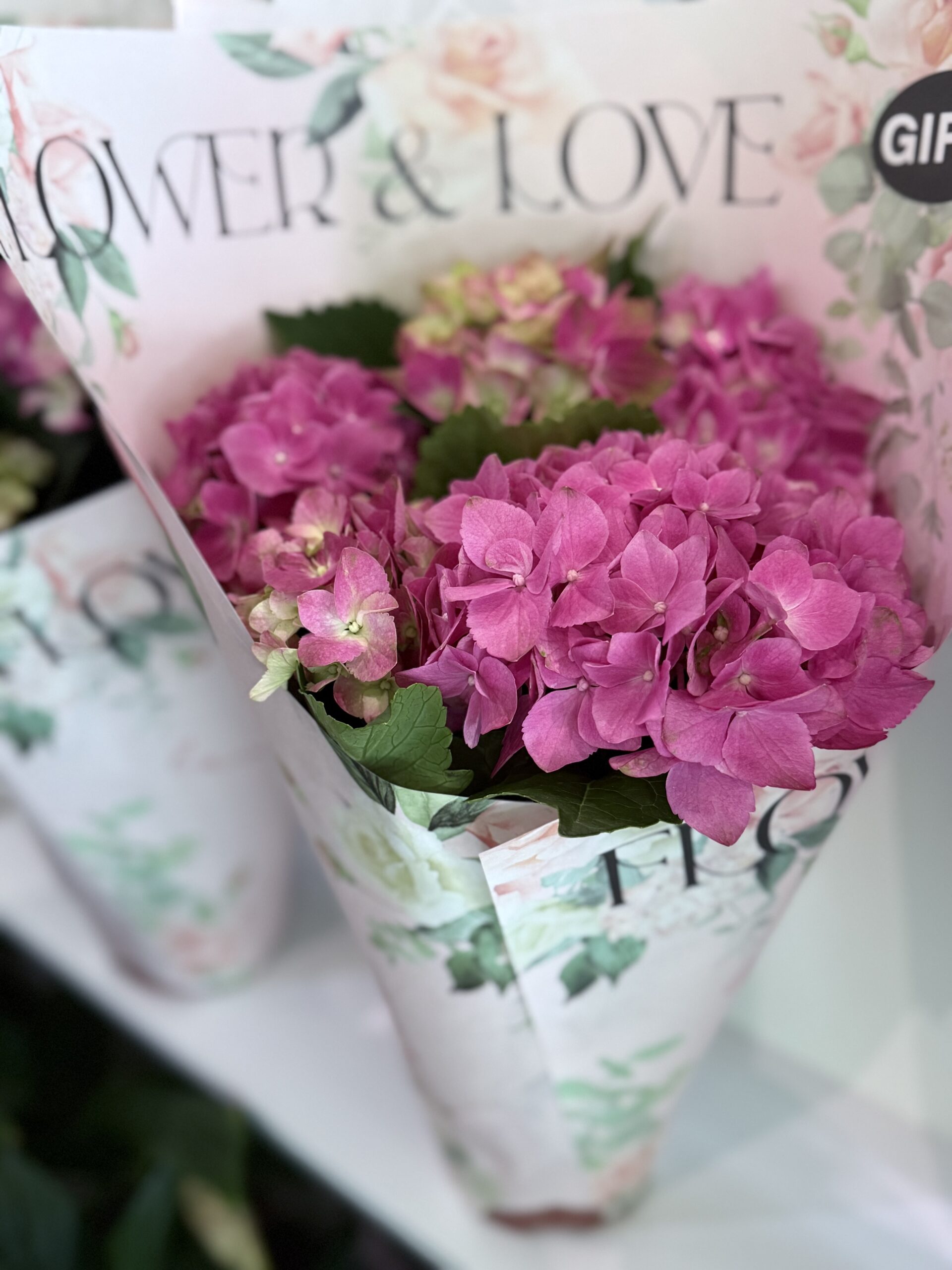A cserepes hortenzia (Hydrangea) dús lombú, látványos virágú dísznövény.