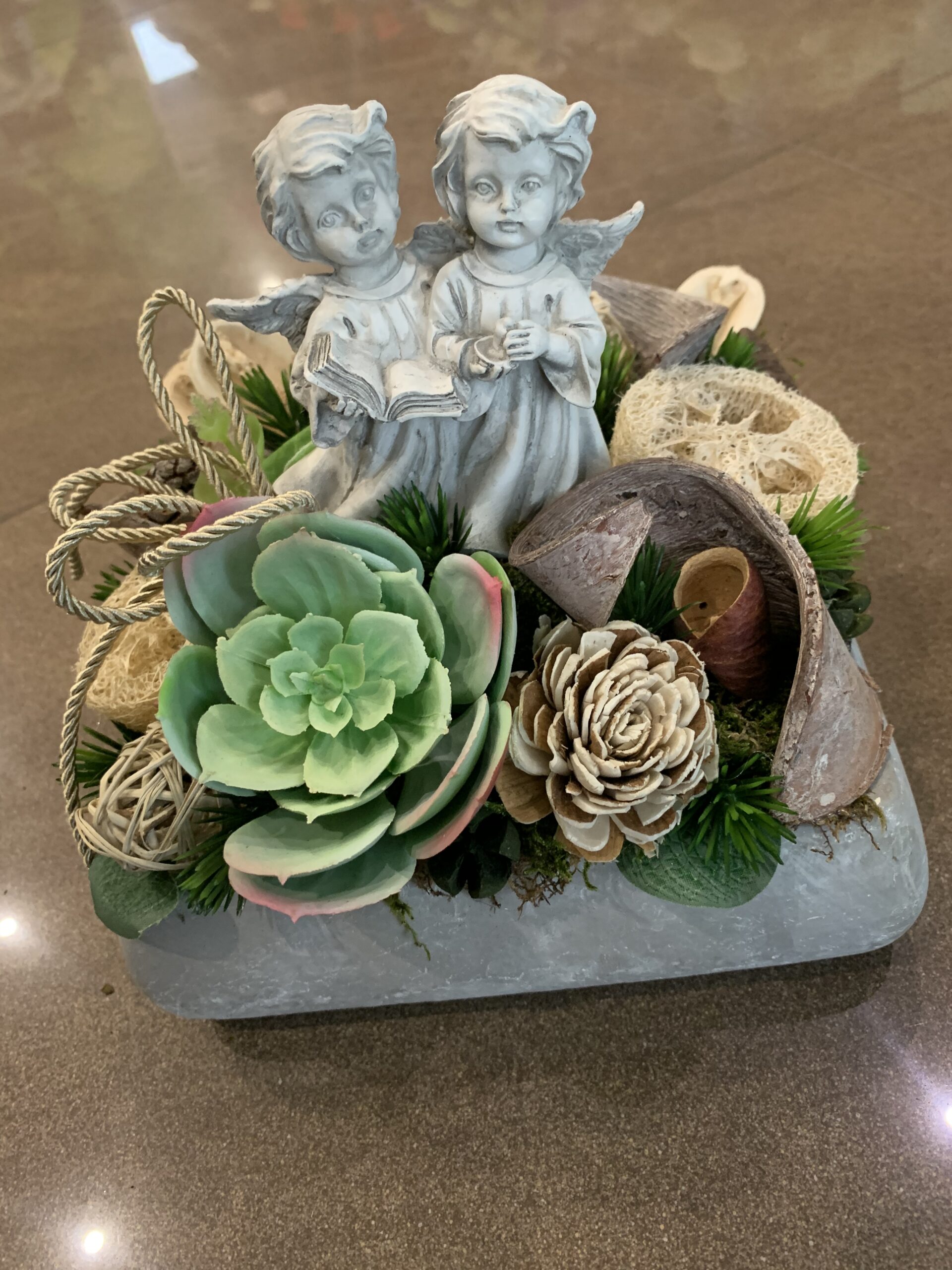 Kegyeleti kőtál, dupla angyallal.